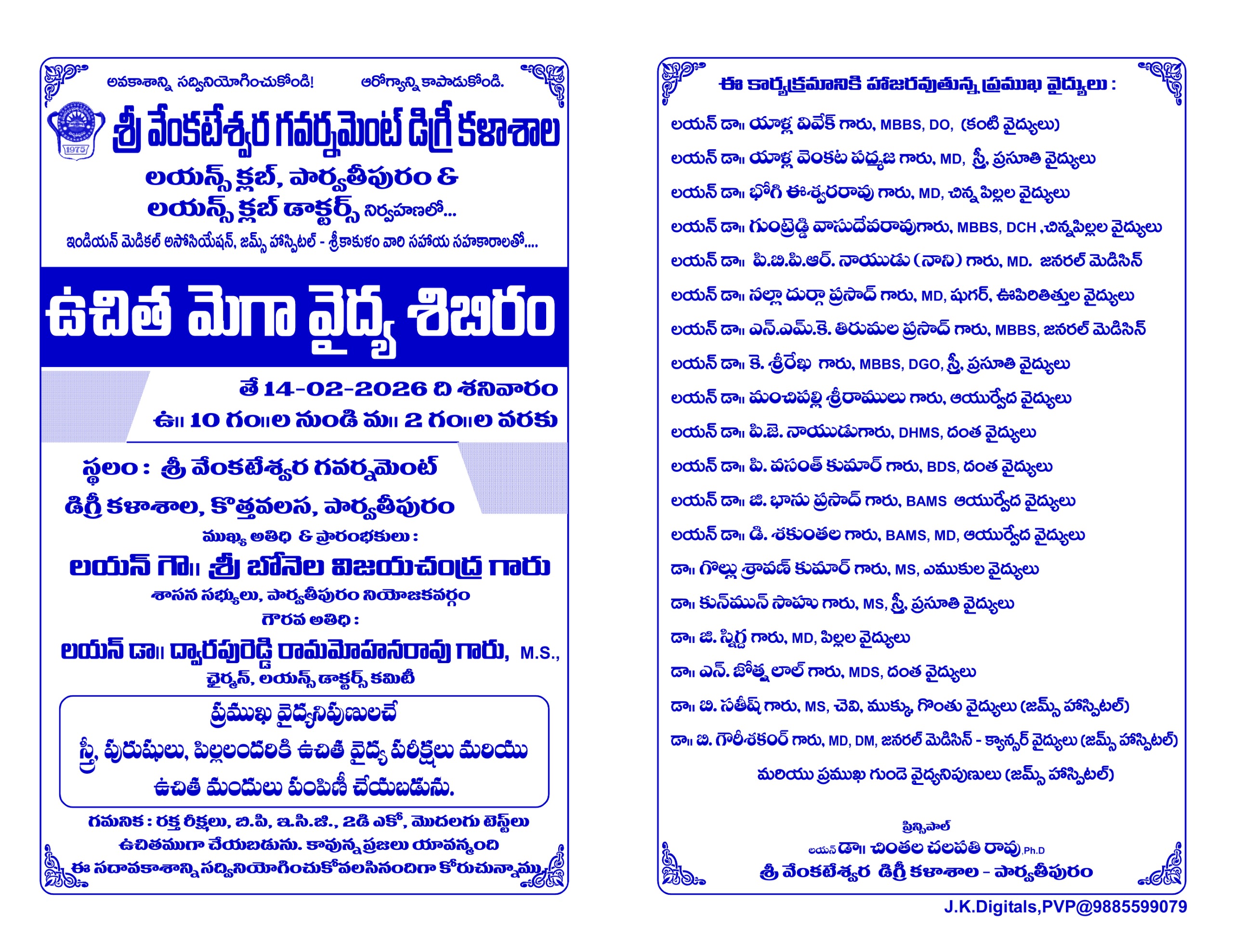 The prospectus introduces you to S V Govt. Degree College and provides detailed information of courses offered, fee structure, general rules and eligibility criteria etc. I advise you to read this document carefully and once you join, I expect you to cooperate in our mission of providing a new dimension to education. Furthering your education at S V Govt. Degree College will be beneficial in gaining a fulfilling career and enable you to contribute positively to our dynamic world.